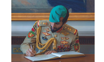 جاء ذلك بمناسبة زيارة سموه إلى أكاديمية ساندهيرست العسكرية الملكية بالمملكة المتحدة، بحضور معالي الشيخ فواز بن محمد آل خليفة سفير مملكة البحرين لدى المملكة المتحدة، والشيخ خالد بن علي آل خليفة نائب مستشار الأمن الوطني، والشيخ أحمد بن عبدالعزيز آل خليفة رئيس جهاز الأمن الاستراتيجي، والشيخ خالد بن حمود آل خليفة محافظ محافظة العاصمة، حيث كان في استقبال سموه والوفد المرافق اللواء نييك كاولي قائد أكاديمية ساندهيرست العسكرية الملكية البريطانية وعدد من كبار الضباط بقوة دفاع البحرين والأكاديمية.